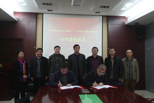 2016年11月3日,广西国土资源厅与我院举办业务座谈会并签订合作协议,商定将加强政研合作,做好国土资源改革创新。广西国土资源厅厅长陈建军,中国国土资源经济研究院院长张新安、书记兰平和、副院长付英等领导出席签约仪式。