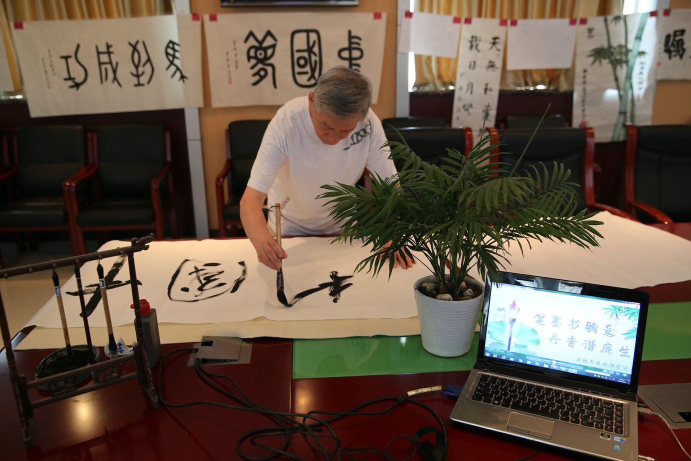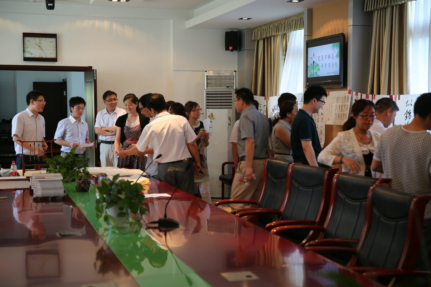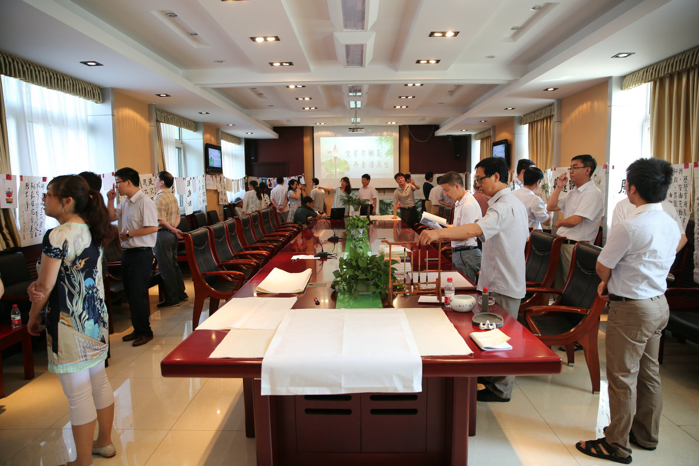 去年院纪委开展了警言佳句创作征集评选活动,并将部分作品进行了集中展示,廉政文化墙初具雏形。按照院党委的部署要求,我们将努力把廉政文化墙打造成能积极反映“律己、修德、戒贪、廉正”等思想主题的廉政文化长廊,院纪委将从本次交流会中推选出优秀书画作品丰富到廉政文化长廊中去。