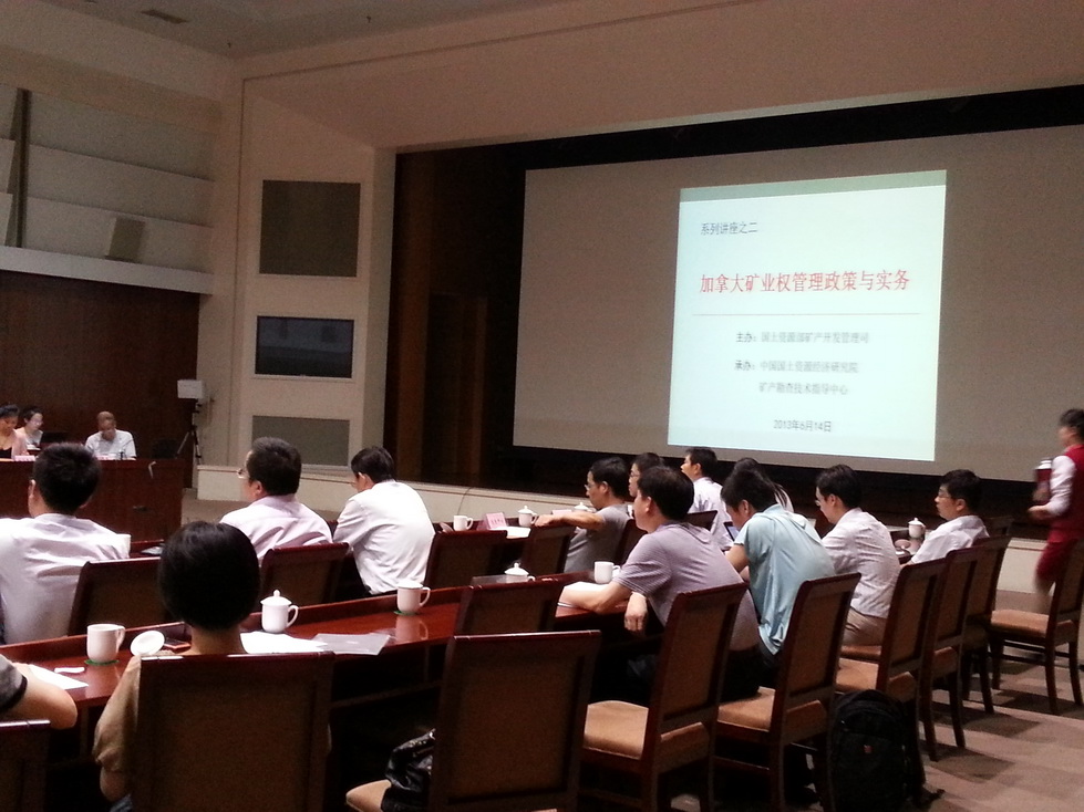 6月14日,由部开发司主办、经研院及矿产勘查技术指导中心承办的第二期矿业权管理政策与实务讲座在京举行。讲座邀请中国矿业联合会曾绍金高级资政介绍了加拿大安大略省矿业权管理及勘查情况。曾绍金研究员详细介绍了安大略省矿业权管理机构、矿业权申请、矿业权与土地关系、勘查情况等内容,并与我国矿业权管理制度相比较,提出以世界经济一体化的趋势来看待中国的矿业发展,用市场机制来解决市场经济中所面临的问题等建议,为我国完善矿产资源管理、合理配置矿产资源、改善勘查环境和矿群关系等提供了参考思路。部相关司局、五矿集团、神华集团、中铝集团、中金集团、有色地调中心、河南地矿局等境外勘查部门负责人,部有关事业单位、地质大学(北京)相关研究人员参会,并进行互动交流。