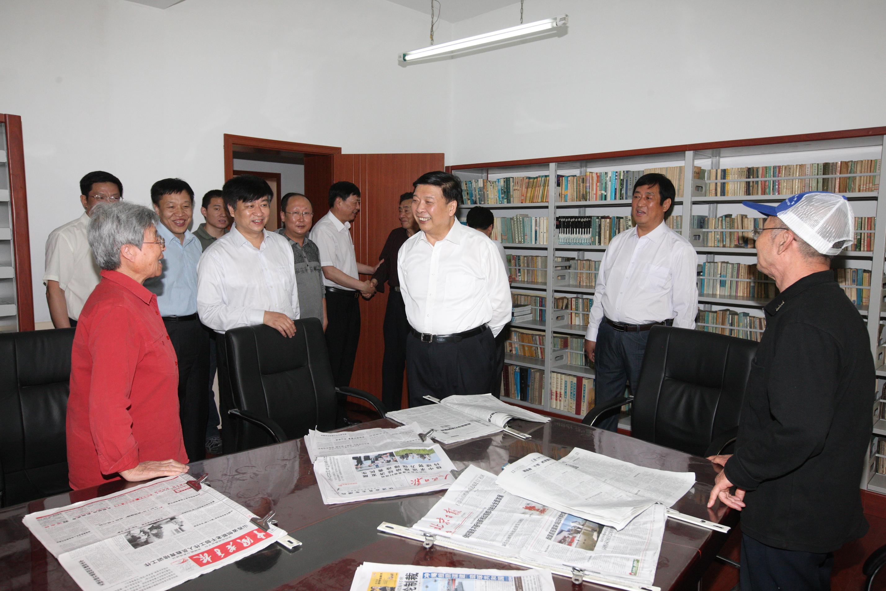 调研行程高效、紧凑,姜大明同志一行边走边参观我院工作、生活设施和园区环境。来到职工活动中心,姜大明看望了正在进行文体活动的离退休老干部,并和他们亲切交谈。随后,姜大明一行参观了成果展览室,了解了历史沿革和科研成果;参观了产业经济所和国土资源规划所,听取相关情况介绍,并看望了科研人员。