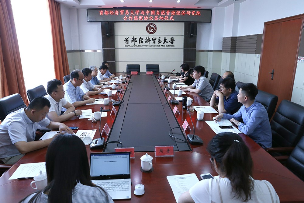 5月30日下午,中国自然资源经济研究院与首都经济贸易大学合作框架协议签约仪式在北京举行。经济研究院院长张新安、首经贸校长付志峰出席仪式并代表双方签订合作框架协议。签约仪式由首经贸会计学院院长顾奋玲主持。