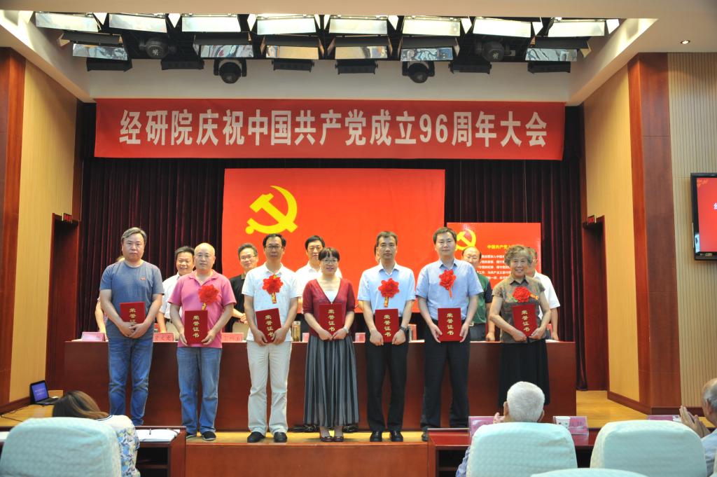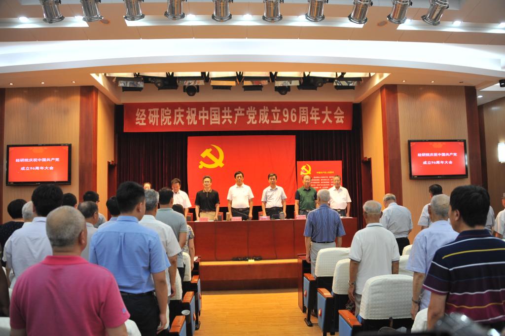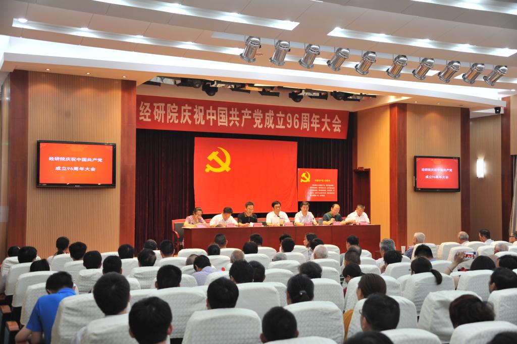 6月29日下午,经研院召开全体党员大会,庆祝中国共产党成立96周年?;嵘?,新入党的同志进行了入党宣誓,老党员重温了入党誓词,对评选出的2016~2017年度优秀共产党员、优秀党务工作者、先进党支部进行了集中表彰。党委书记、副院长兰平和以“扎实推动“两学一做”学习教育常态化制度化”为题讲了一堂生动的党课。大会由党委副书记、院长张新安主持。