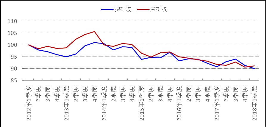 我国探矿权、采矿权季度活跃指数走势图(2012-2018)